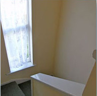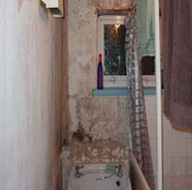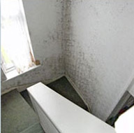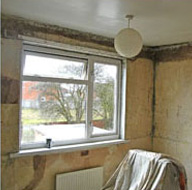 Wallpaper stripped and complete mould treatment system applied to walls and woodwork.