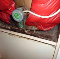 builder when called to treat mould problem 9 MONTHS before our surveyor found this tank ready to fall through the cupboard. This would have flooded the entire property.